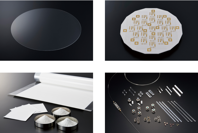 最先端の半導体プロセスで使用される半導体用サポートガラスやLTCC(低温同時焼成セラミックス)製品、封着・被覆・絶縁等を目的として各種電子部品に使用される粉末ガラスのほか、イメージセンサー用カバーガラス、発光デバイスに使用される蛍光体ガラス ルミファスⓇなど多岐にわたります。また光エレクトロニクス用ガラスはデータセンターや光通信網などで使用され、高度情報化社会には欠かせない製品です。