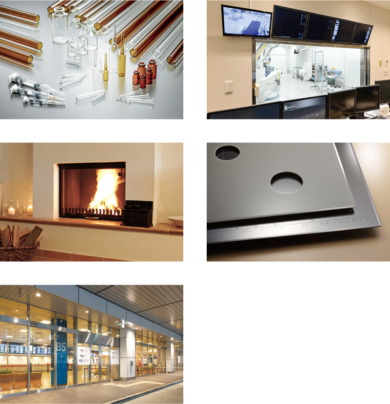 医療分野では、耐酸性や耐薬品性、強度に優れたホウケイ酸ガラス製の管ガラスが、アンプルやバイアルなど医薬容器の材料としてニーズが高まっています。優れた耐熱衝撃強度や機械的強度を持つ超耐熱ガラスは、ストーブや暖炉の窓、調理器のトッププレートなどの住設機器用途に使用されています。建築分野では、火災時に身を守る防火ガラスや、空間を彩る結晶化ガラス建材、ガラスブロックなどが、住宅、商業施設、公共施設などで使用されています。