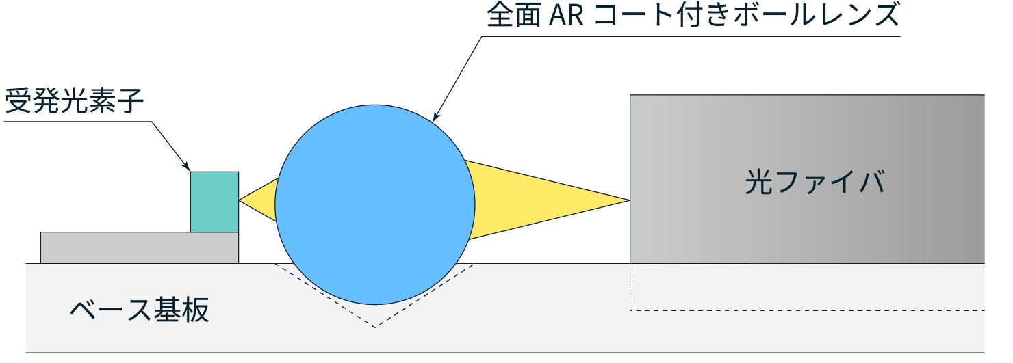 An anti-reflection coating is applied to the entire surface of a high-precision ball lens made from precision-machined optical glass. This ensures that all surfaces are evenly coated, making alignment easier.