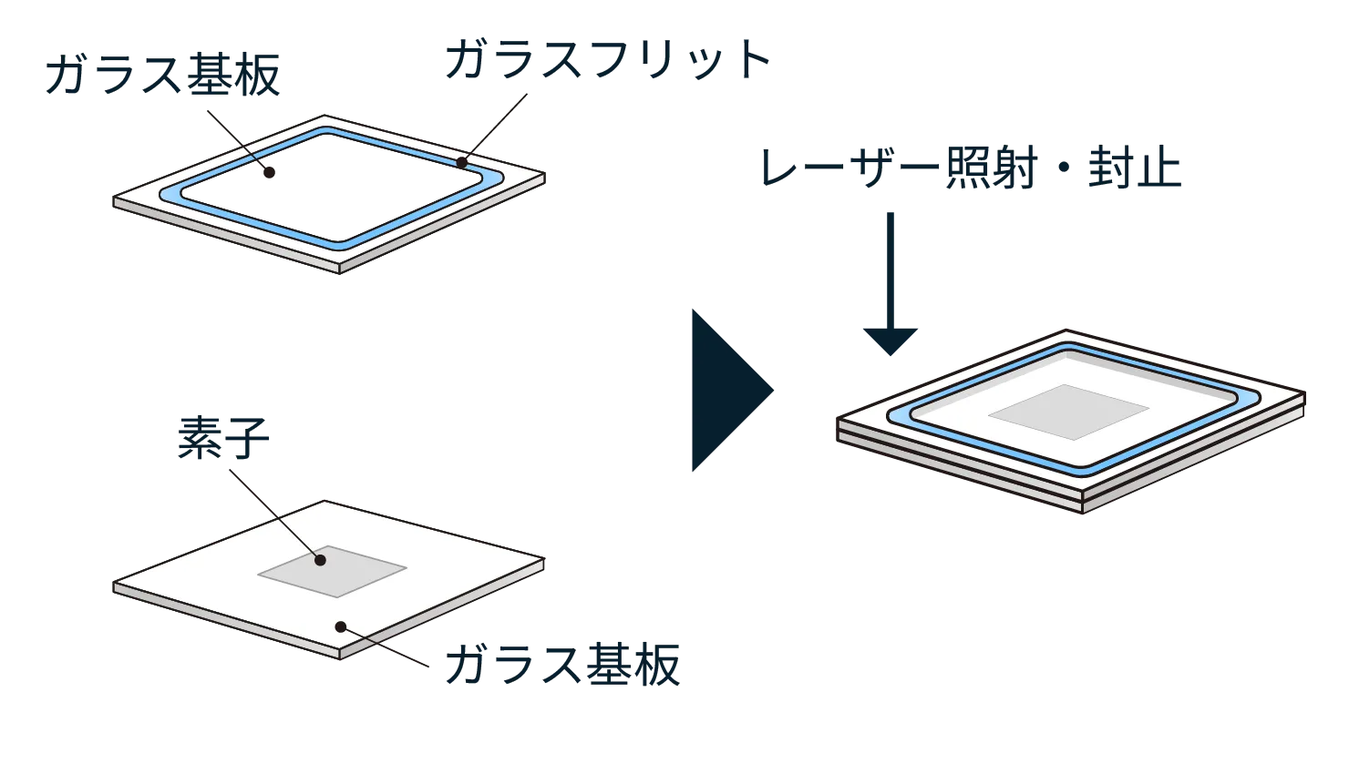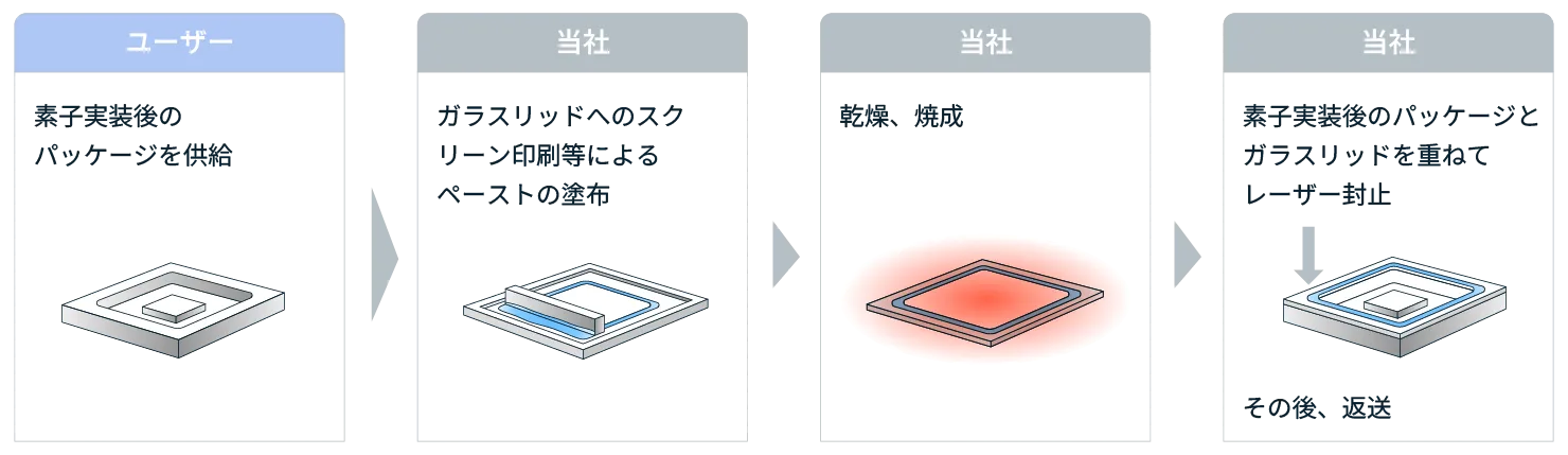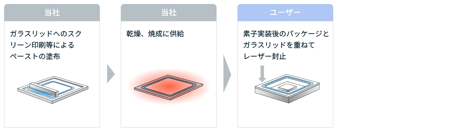 2.レ ーザーガラスフリットを塗布し焼結させたガラスリッドを供給(ユーザーにてレーザー封止を実施)