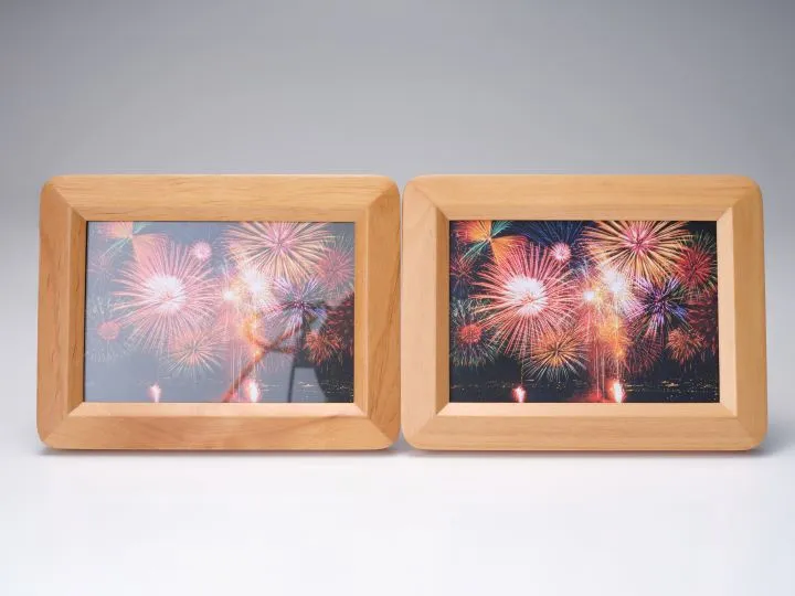 光学薄膜を成膜することにより、ガラスの反射や透過を制御することができます。例えば、AR(反射防止)膜は、光の干渉を利用して「映り込み」を低減します。それにより、ガラスの向こう側にある対象物がより見やすくなるため、ディスプレイのモニターや絵画のカバーガラス、宝飾店の展示ディスプレイなどに用いられます。また、光の乱反射を利用して「ぎらつき」を抑えるAG(アンチグレア)膜を成膜したガラスは、屋外や電灯下で使われるモニターやデジタルサイネージに用いられます。